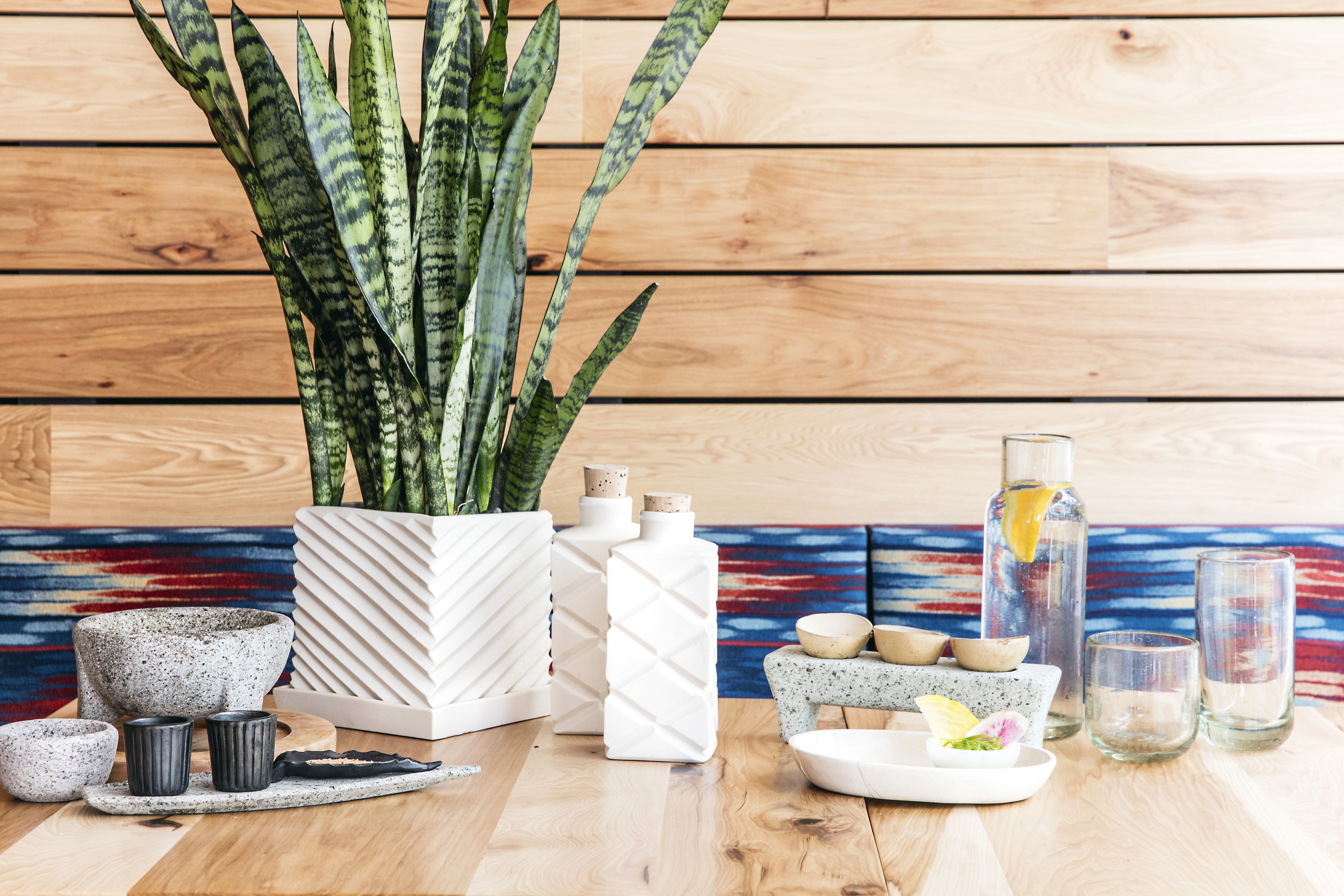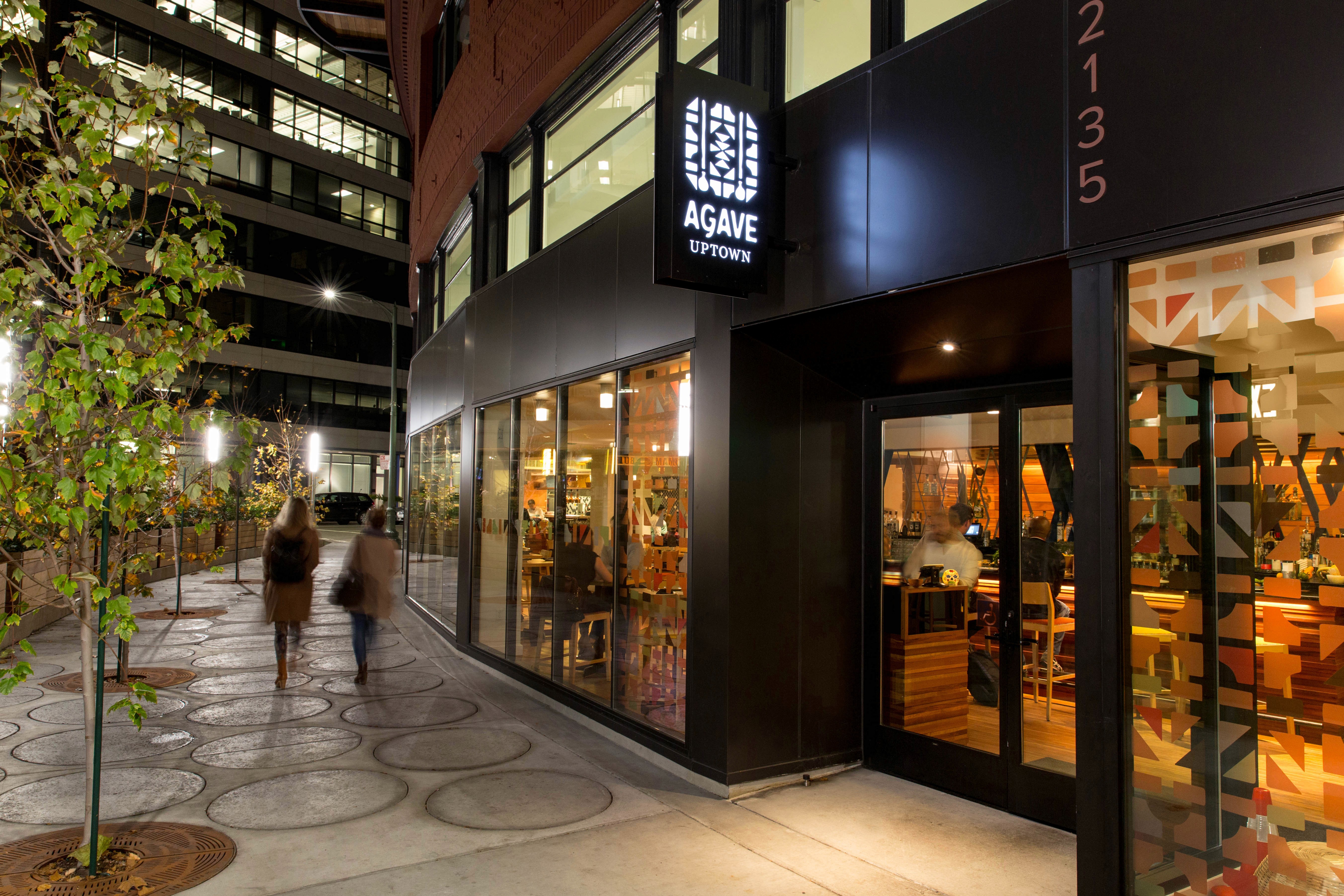 Agave Uptown is an oasis filled with thoughtful design references that bring the history and diverse energy of Oaxaca, Mexico to Oakland, California. Named in homage to the agave plant, a central Oaxacan commodity, the majestic agave plant serves as a cultural mainstay supporting communities who rely on the cultivation of mezcal. Using similar techniques as ancient Zapotecs, the modern-day farmer still uses a tool called the coa to remove the leaves from the piña, the heart of the agave plant. The coa tool, and specifically the angular motion made during harvest, was the muse for the design of Agave Uptown.