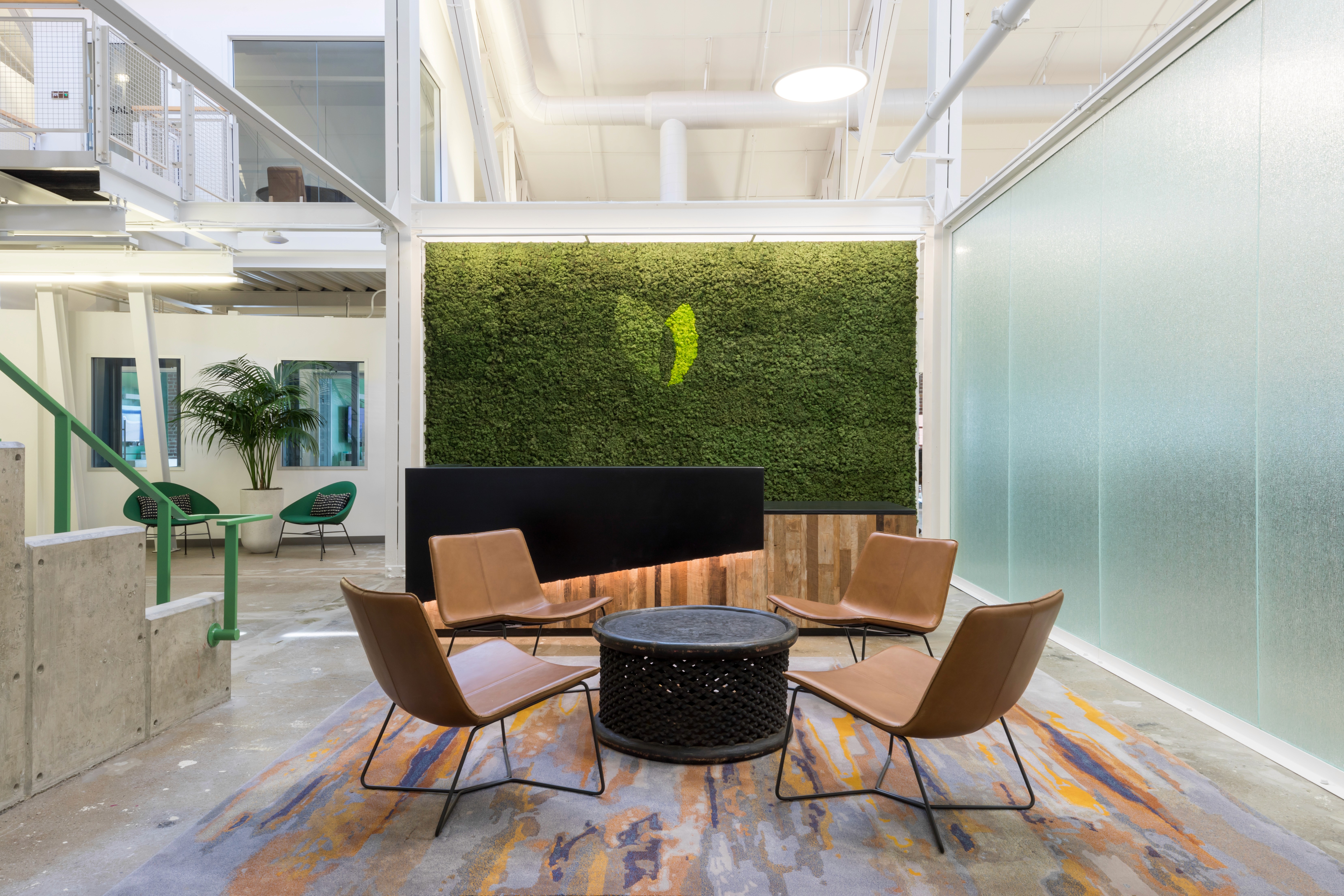 Brightmark is an office tenant improvement project located in San Francisco. Upon entering Brightmark’s headquarters, visitors are greeted with a green wall at reception. This immediately sets the tone of the space and reinforces the company’s mission to create a world without waste.