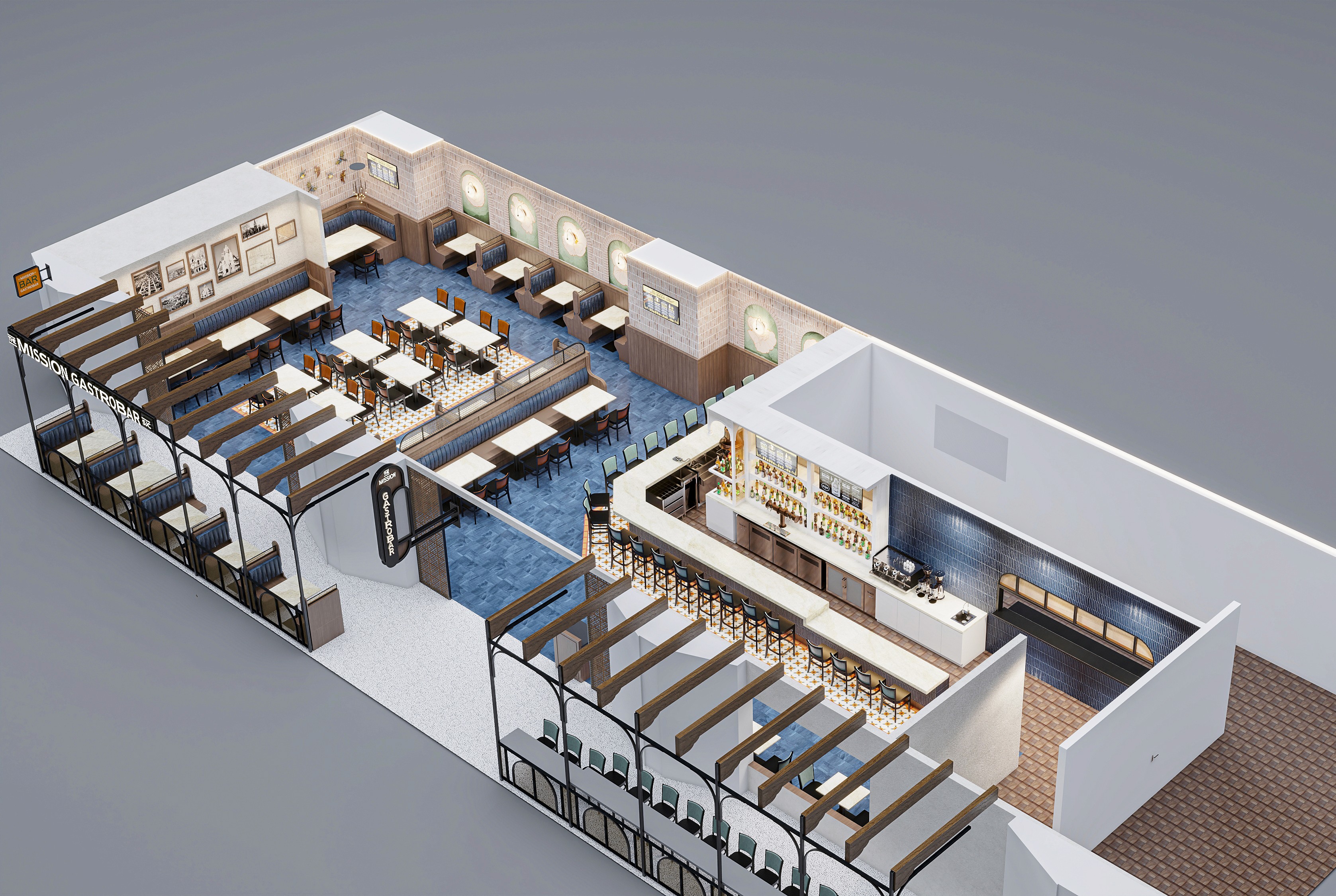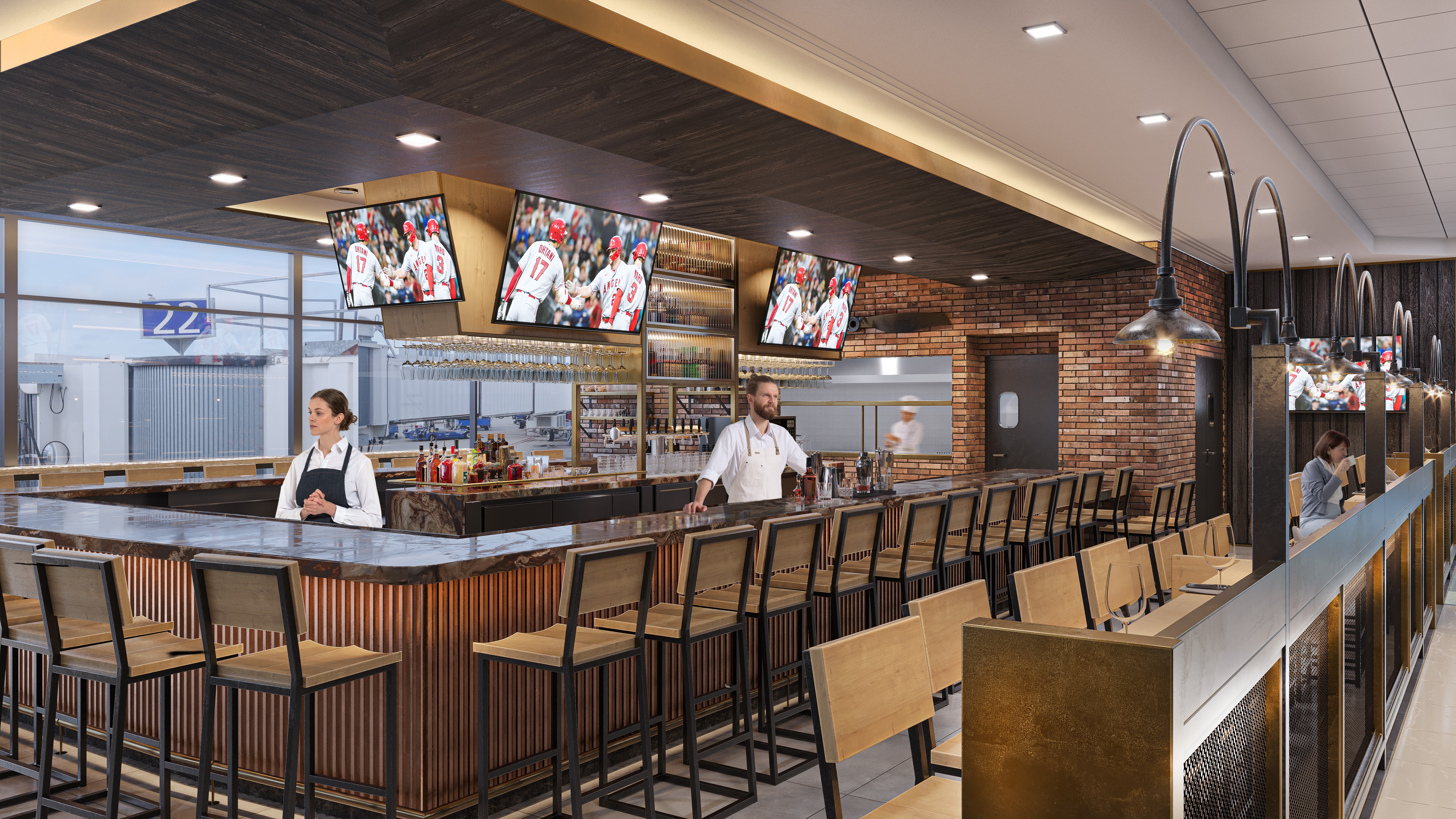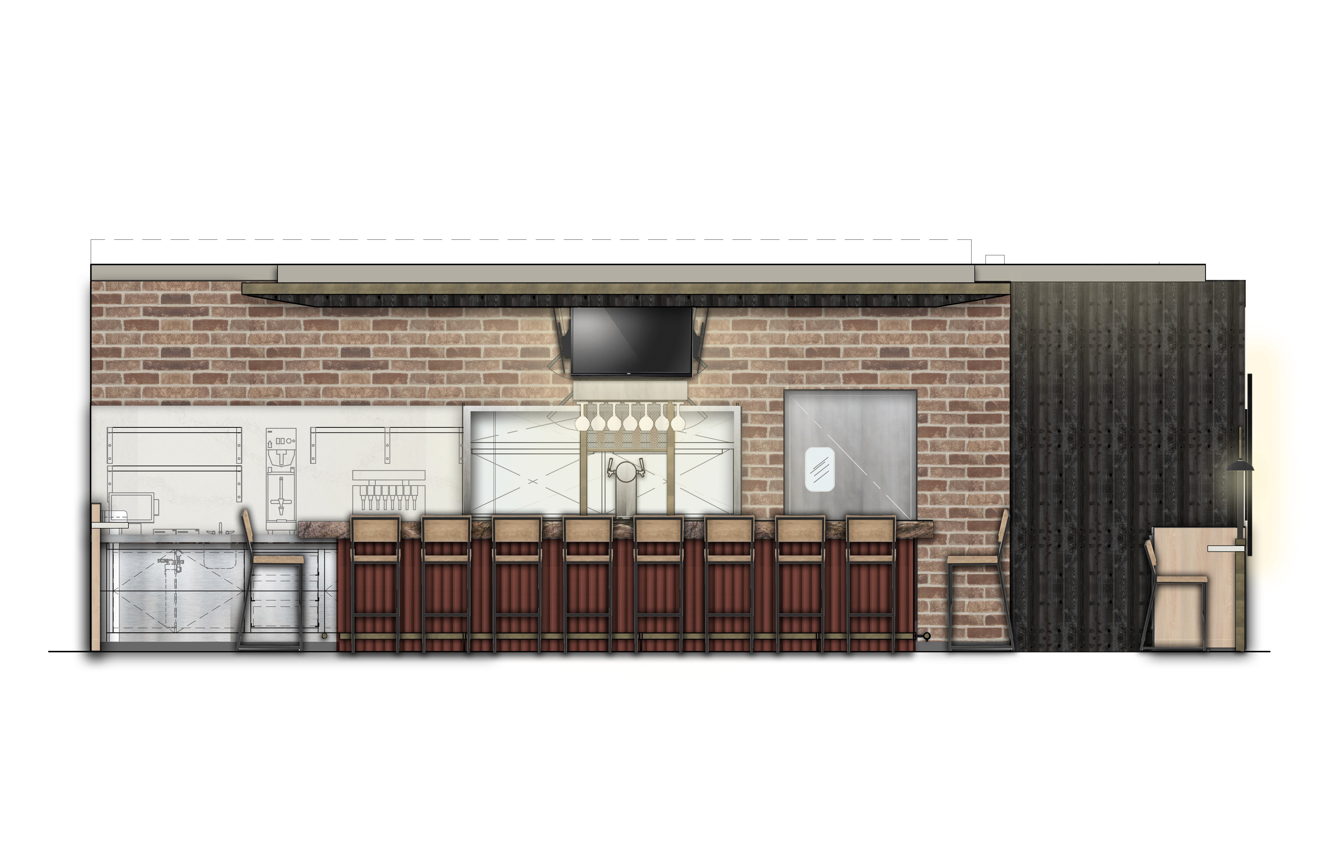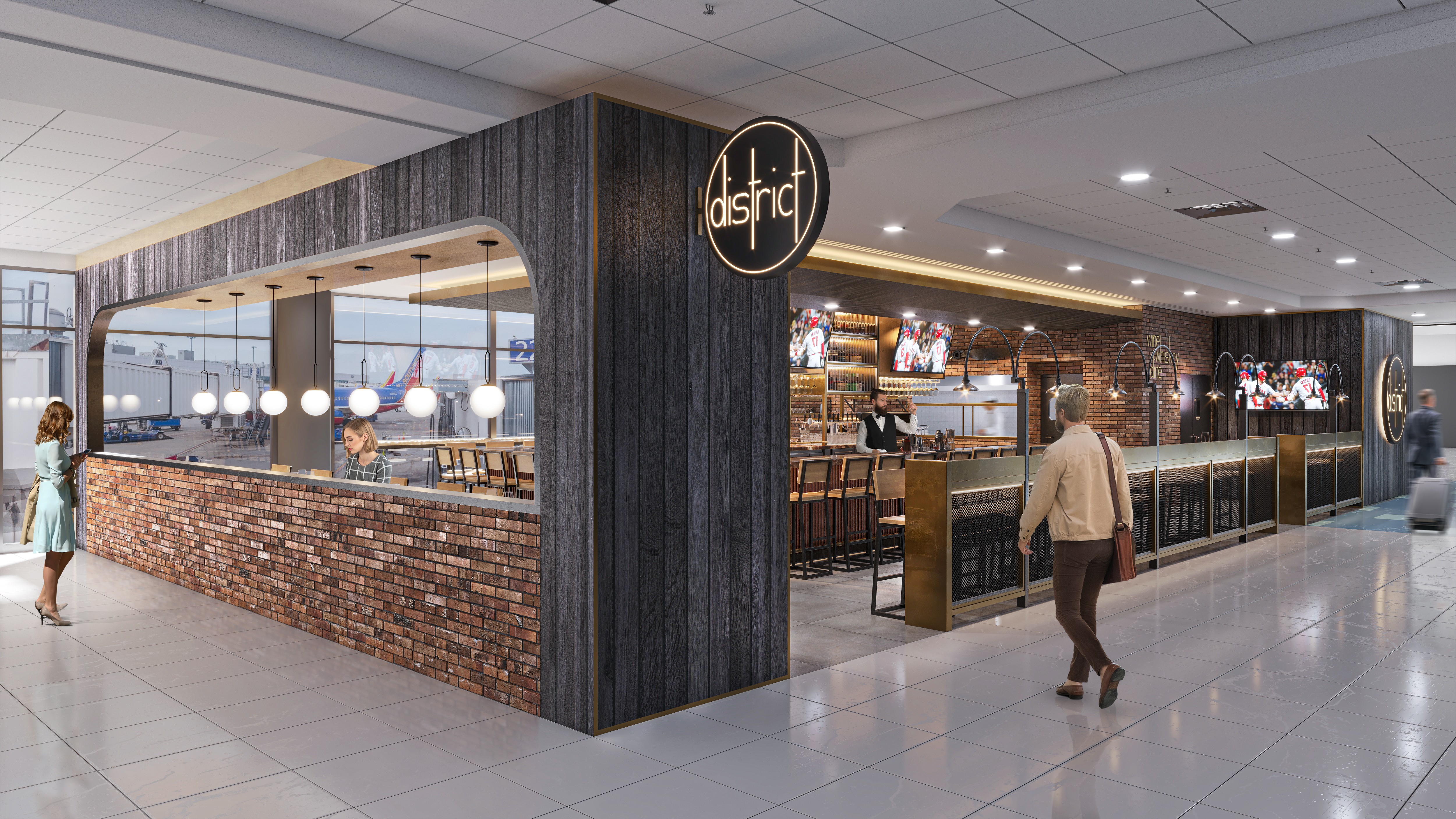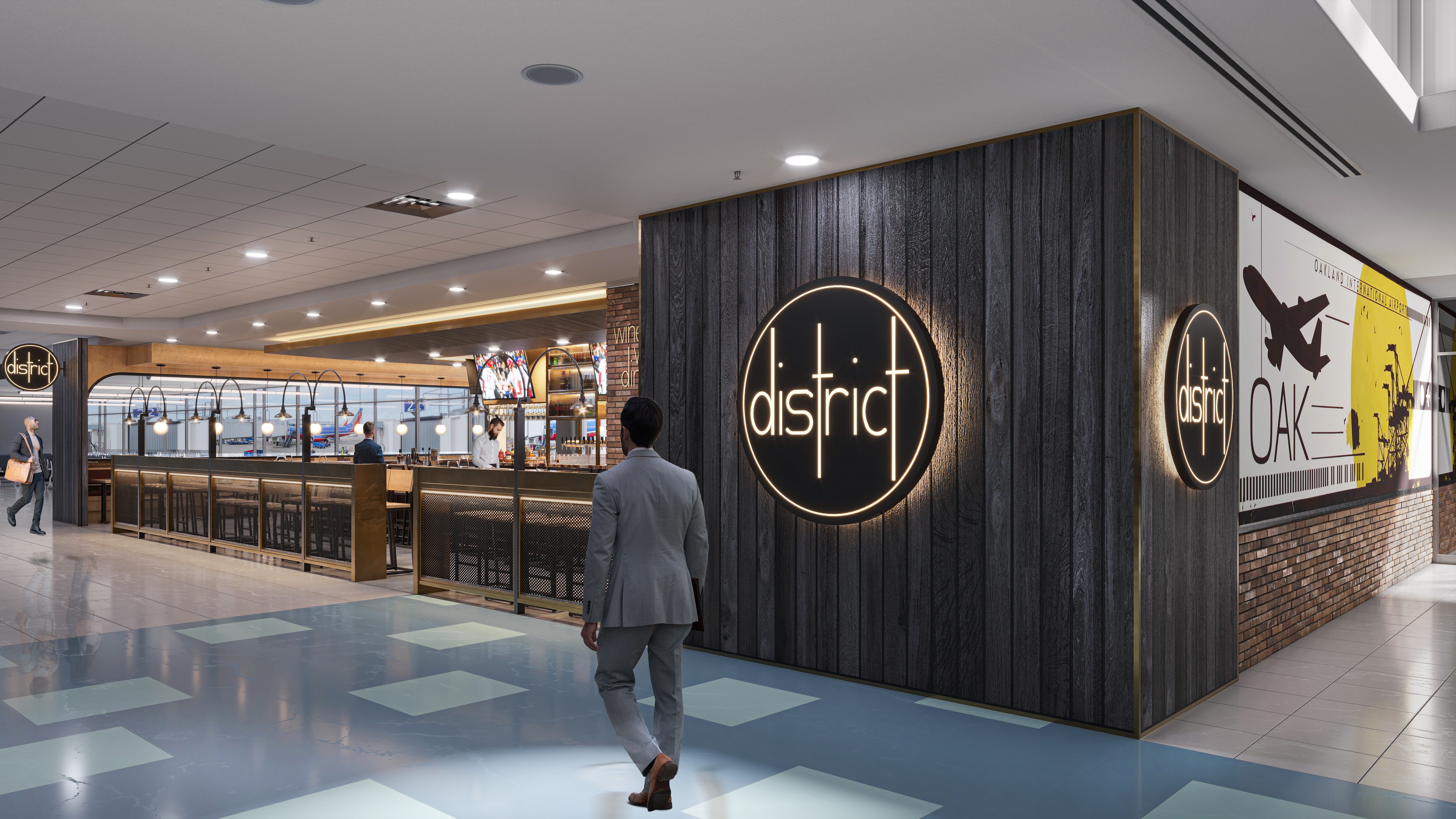 Set to be District’s fourth Bay Area location, this space lets District do what District does best: be a welcoming place to ‘belly up’ and enjoy a fantastic glass of wine, a whiskey, or a cocktail. Following spirit of the Oakland District location (also for which Arcsine was architect), the design for this Terminal 2 location uses strong materials and comfortable, welcoming furnishings to make each guest linger and enjoy the views to the bustle of the airfield.