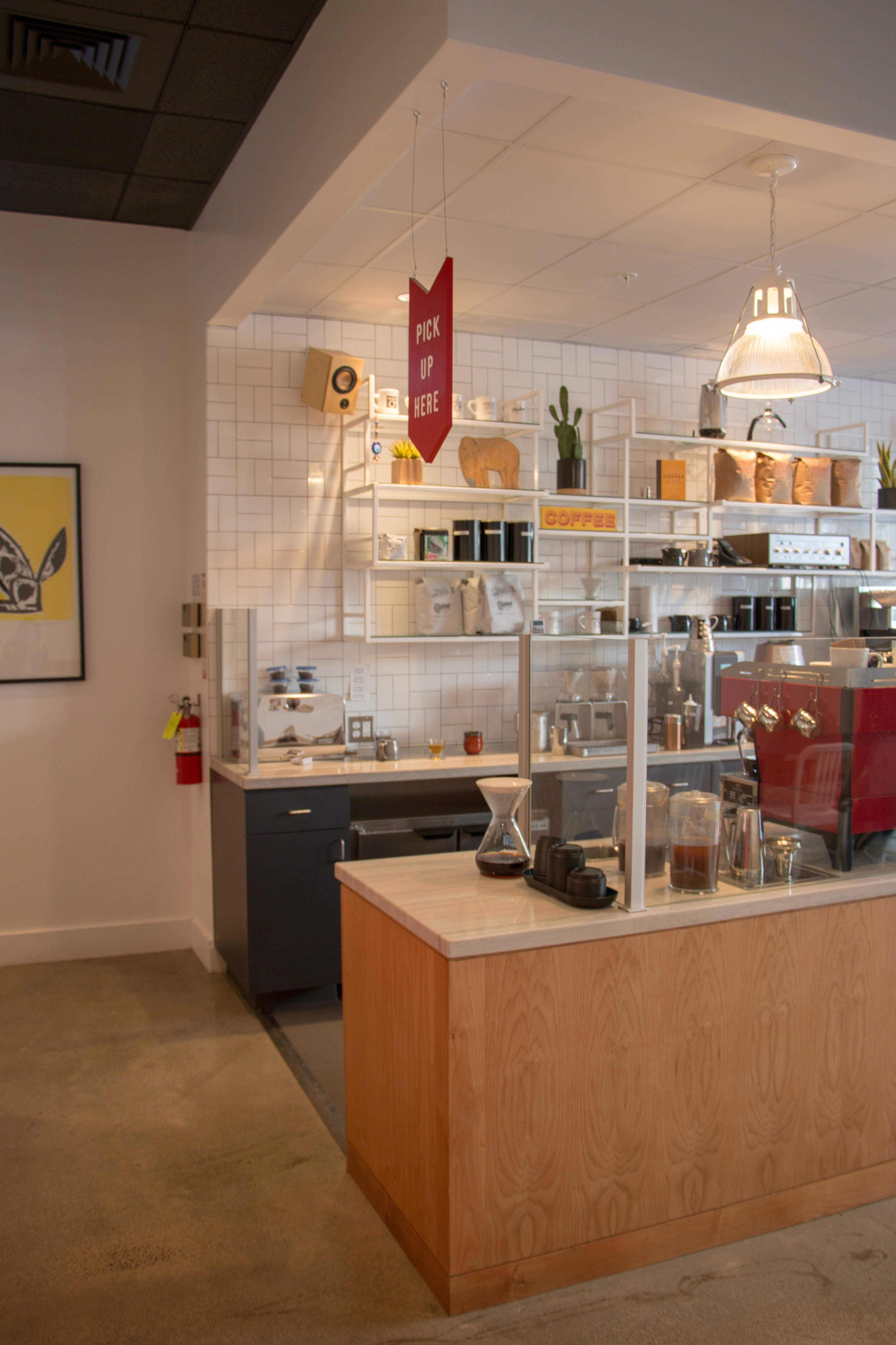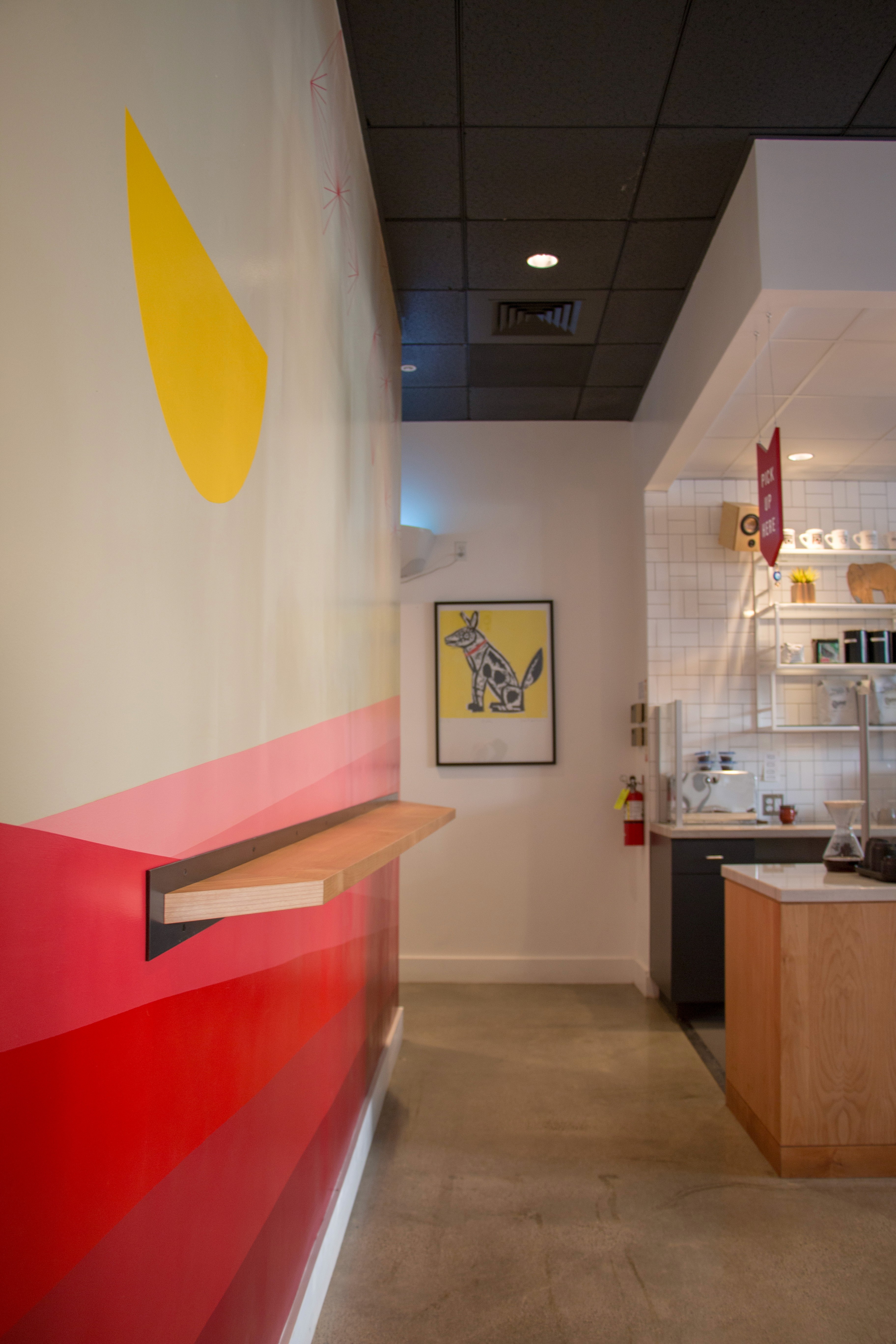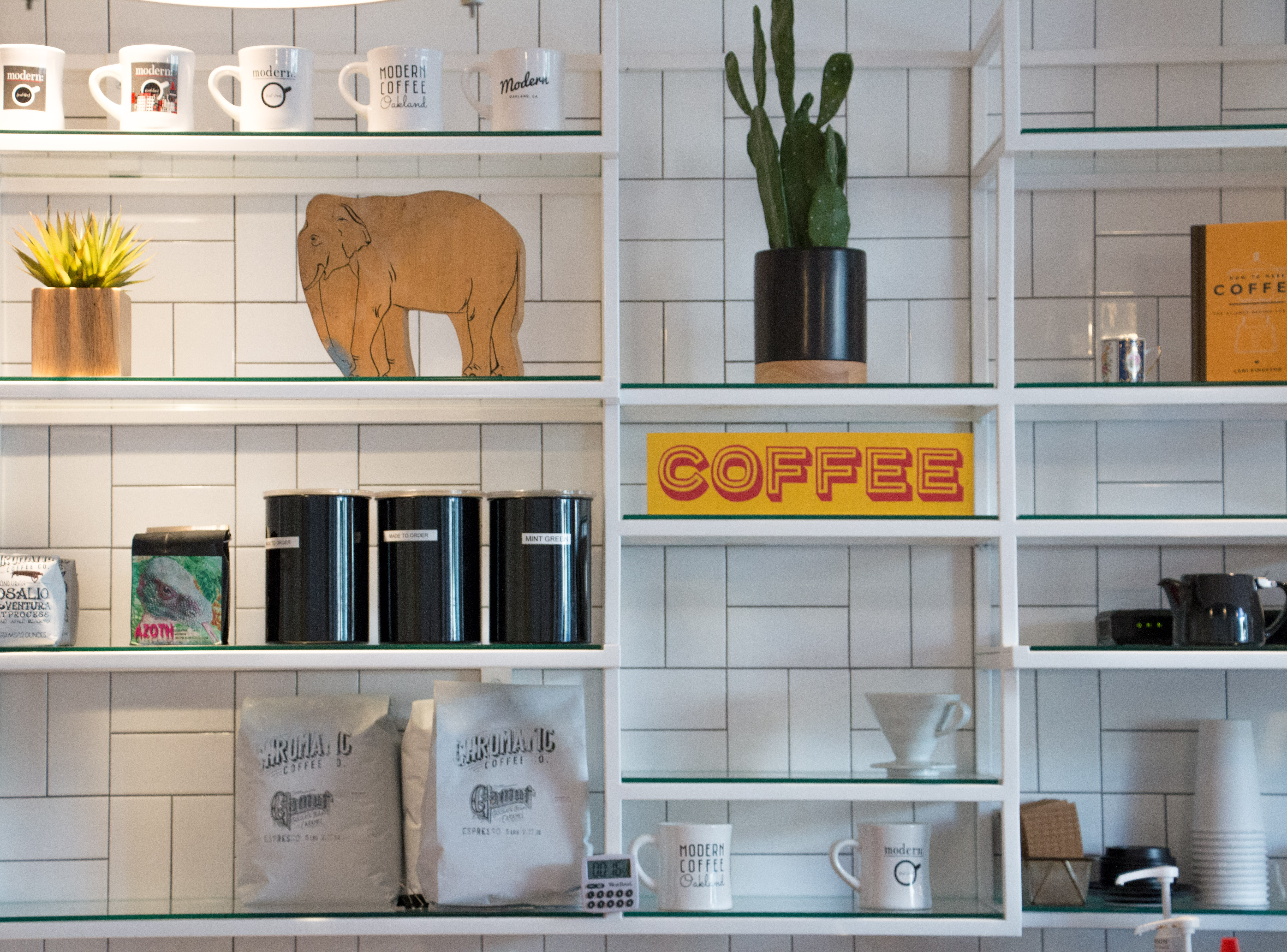 With touches of hand painted signage, a sculptural retail display, the warmth of wood against blackened steel, and a strong color palette, Modern Coffee sets the stage for everyone’s neighborhood coffee shop needs.