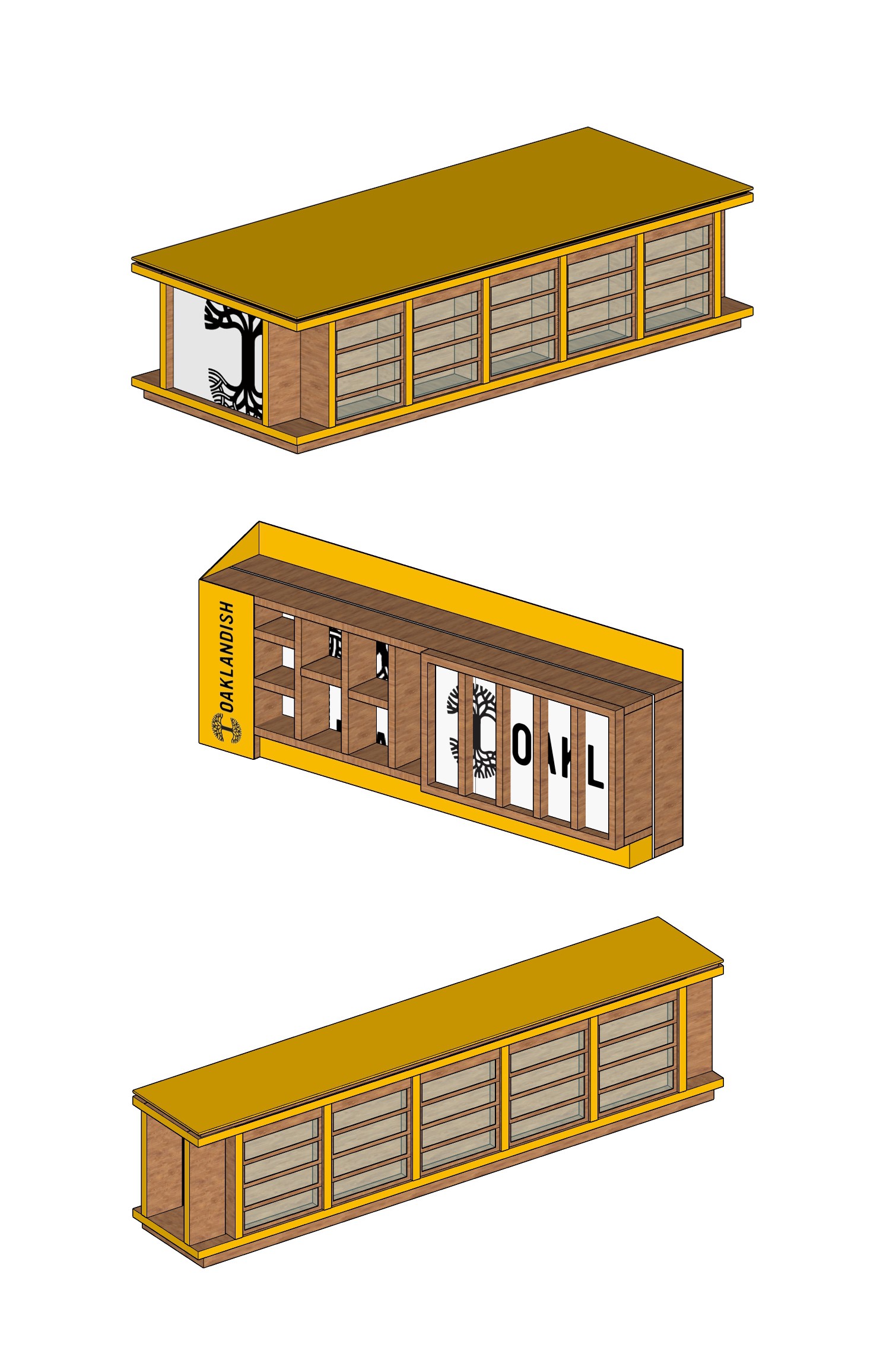 This design is particularly interesting - and challenging - in that a previous environmental impact report requires that travelers have continuous access to the viewing of the adjacent Estuary and wetlands. As such, this design could not have any walls taller than six feet and also could not be closed during hours of non-operation. Arcsine customed designed a solution which secures all product after-hours, yet provides for pleasant access to the glazing and views of the Estuary.