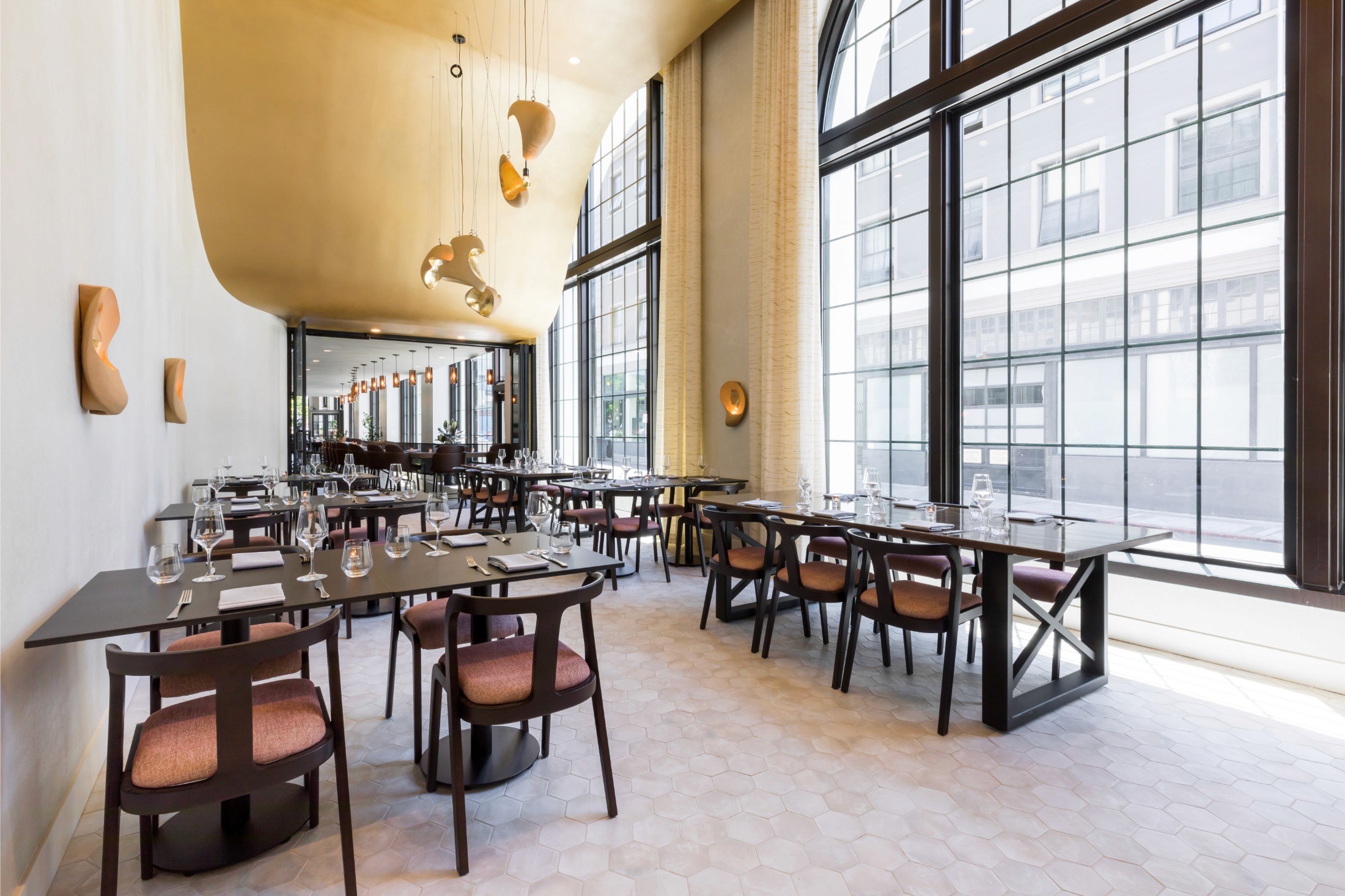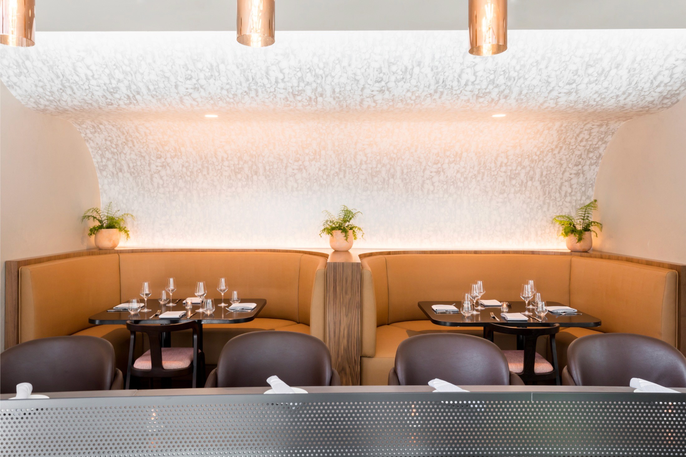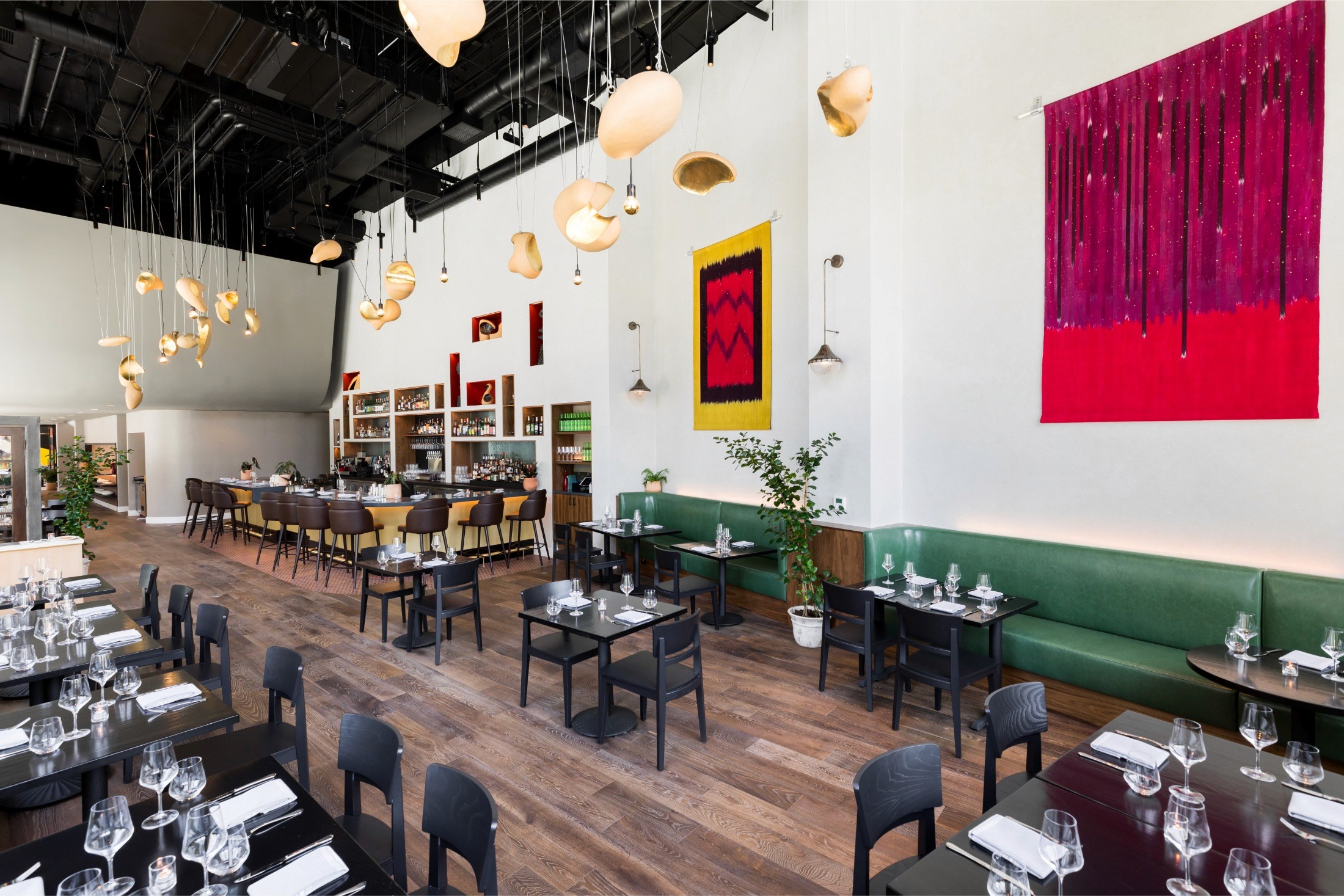 Inspired by the Occitan linguistic region, covering southern France, the alpine region of Italy’s Piemonte, and Spain’s Catalonia, the Arcsine team worked closely with Chef Paul Canales to replicate the sensations of these regions, utilizing native poetry to guide the initial design concept. The exploration of color, iridescence, light and the concept of movement served as central themes for the overall design—with the color palette taking inspiration from the golden wheat fields, purple pastures of lavender, terracotta tiles and the untamed greenery of these captivating coastal and central cities.
