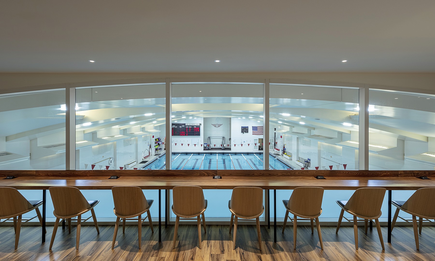 Overlook Café, renovated and reconceptualized, transports members and guests to a time when mid-century modern architecture and design flourished. Situated above the pool room at The Olympic Club—a historical athletics club operating since 1860 in San Francisco—the café combines the club’s sports-driven heritage with stylish and contemporary accoutrements.
